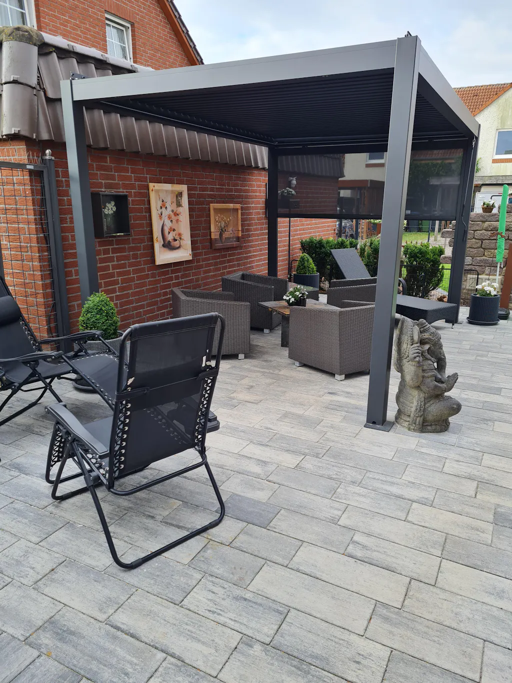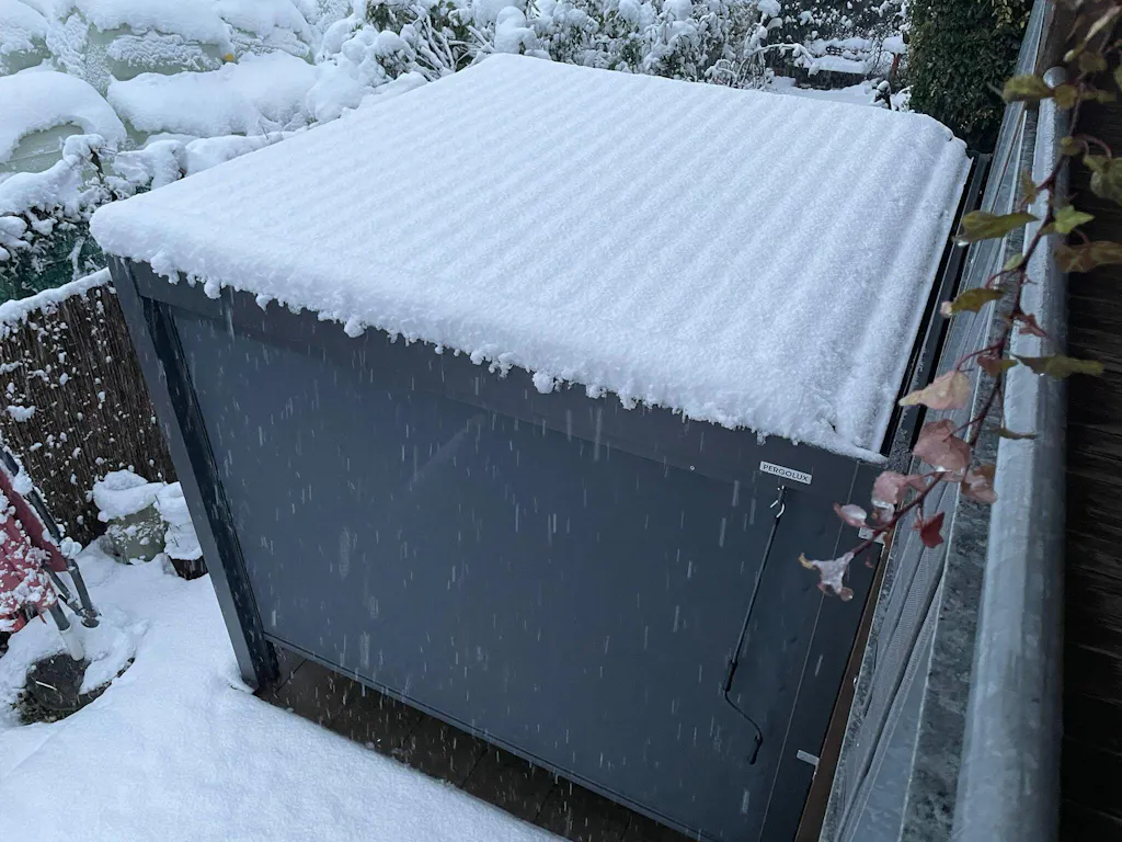 Designet med en pulverlakeret aluminiumsramme, smelter den problemfrit sammen med din pergola og tilbyder et slankt, moderne look uden at gå på kompromis med holdbarheden.