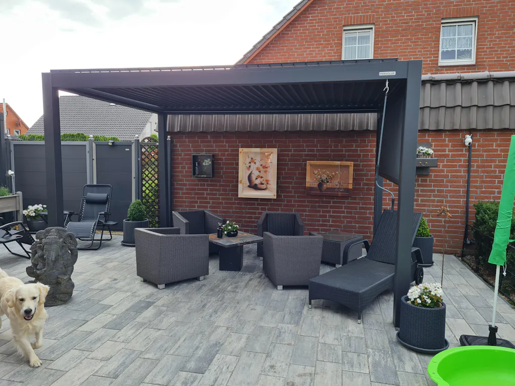 Tag fuld kontrol over dit udendørs rum med PERGOLUX Screen—en premium, højdejusterbar sol- og privatskærm, der forbedrer din pergola med skygge, vindbeskyttelse og insektforsvar.