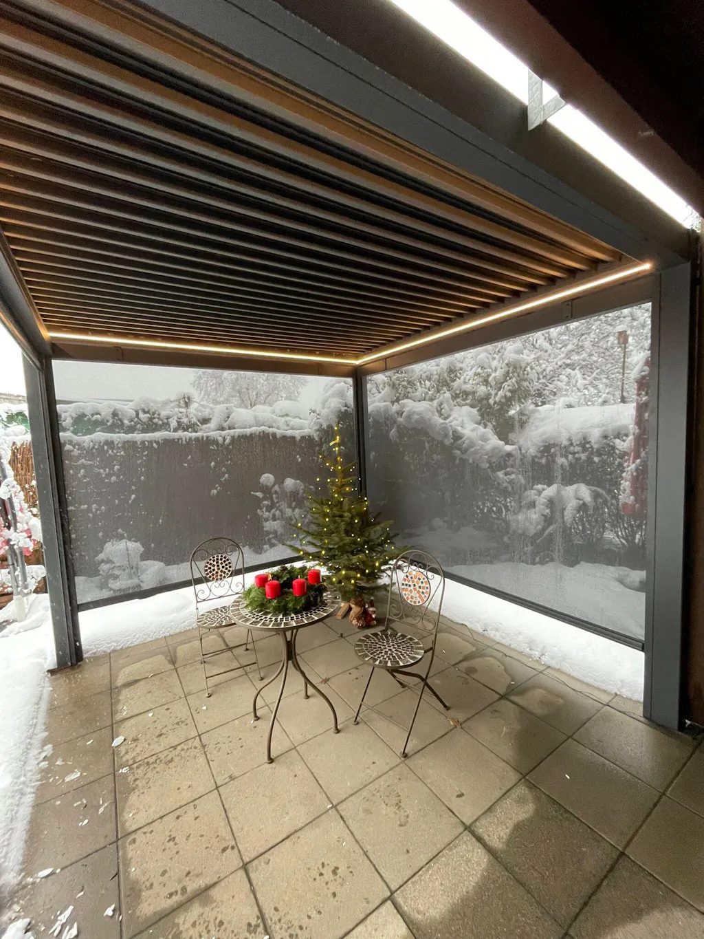 - Sømløs Integration Designet til at matche din pergola perfekt, fås i hvid eller antracitgrå, og kompatibel på alle fire sider for et fuldt lukket rum.